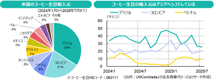 対象物品のうち、コーヒー、紅茶、熱帯果物・果汁、ココア、スパイス、バナナまでは米国は産地として適していないため、ほぼ全量が輸入されており、今後も変わることはないだろう。そのため関税を引き上げたところで国内生産への影響はない。むしろ、コスト上昇は消費者に直接対応するサービス業にその負担が寄っていくことになる。例えば、コーヒーチェーン大手のスターバックスは9月に約900名に及ぶ非店舗部門のスタッフを解雇し、北米市場での店舗展開を見直す方針を明らかにした。高付加価値サービスを提供していることもあって、コーヒー豆の価格上昇がこうした取り組みに直接影響したとは考えにくいことではあるが、こうした事業環境の変化が企業行動の変化を促すきっかけとなった可能性はあるだろう。