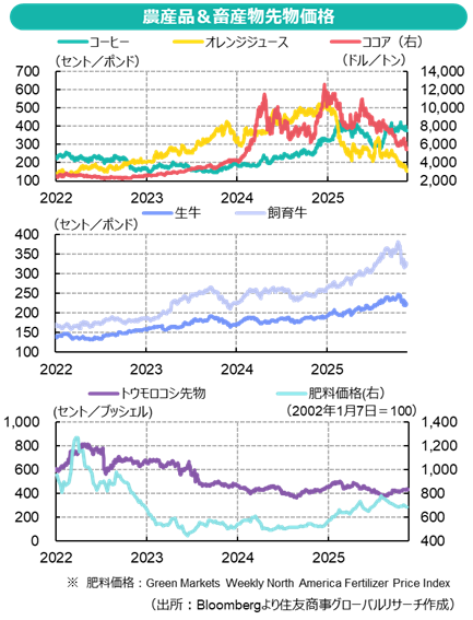 では、政権や消費者の期待通りに価格低下に向かうかというと、必ずしもそんな簡単な話でもないようだ。コーヒーで言えば、欧州の森林破壊指令(EUDR)によって森林破壊や劣化に関わる商品の欧州での流通が規制されており、その規制対象物品にコーヒーが含まれていることが、取引所の認証在庫の大幅減少を招き、コーヒー価格の高止まりの最大の原因と考えられている。この規制では大手・中堅企業には2025年の年末から、小規模事業者には2026年6月末までに「どの農園で生産されたか」、「人権や環境が守られているか」といったサプライチェーン上のトレーサビリティの確保が求められている。その規制準備のために在庫が減少していると指摘されている。他には、ブラジルでの霜害など悪天候による収穫量の減少や品質低下、米国とコロンビアの対立やエチオピアでの社会混乱など産地の不安定な状況もあげられている。関税以外の供給側の問題が価格を押し上げているなら、生産量と在庫量が安定するまでの間は高値が続くことになる。同じし好品で言えば、ココアやオレンジジュースは供給量(生産量)が安定するまで価格は高止まりしたが、その後の急落は高値を嫌ったことで生じた需要シフトやその弱体化が背景にある。コーヒーも今シーズンは既に若干の供給過剰に転じたと見込まれており、関税だけではなく、海上・陸上の輸送を含めた流通の状況、消費者の意向を反映した需給バランスが価格のトレンドと水準を決めていくことになるだろう。