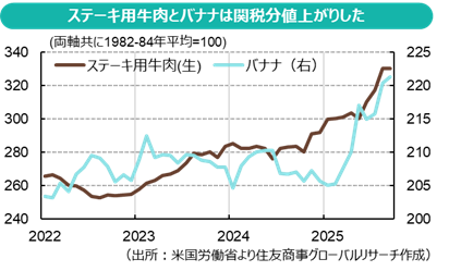 他方でオレンジ、トマト、牛肉などの一部は米国内で生産されているが、供給能力は十分ではない。そのため輸入が国内価格の安定に貢献してきた。オレンジはブラジル、トマトはメキシコからの輸入比率がそれぞれ高く、外交上の対立が続いているが消費者の便益が優先された格好となった。