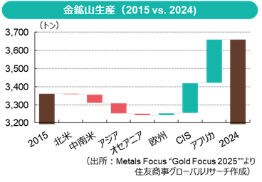 企業別では、2023年にNewmont(米国)がNewcrest(オーストラリア)買収で世界首位に躍り出たが、現在は経営統合後の合理化・非中核資産の売却を進めている。2位に後退したBarrick(カナダ)は2025年5月、金価格が高値更新を繰り返す中で、社名を「Barrick Gold」から「Barrick Mining」に、米国株式市場のティッカーを「GOLD」から「B」に変更し、「Gold」色を薄めた。同社は近年、タンザニア・マリ金事業で資源ナショナリズムに起因する事業リスクを経験してきており、金専業からの脱却と多角化を進め、銅事業を拡大している現状と社名を整合させたものだ。