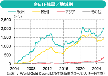 2025年は現物だけでなく、金ETFを通じた投資も活発だった。WGCの統計による