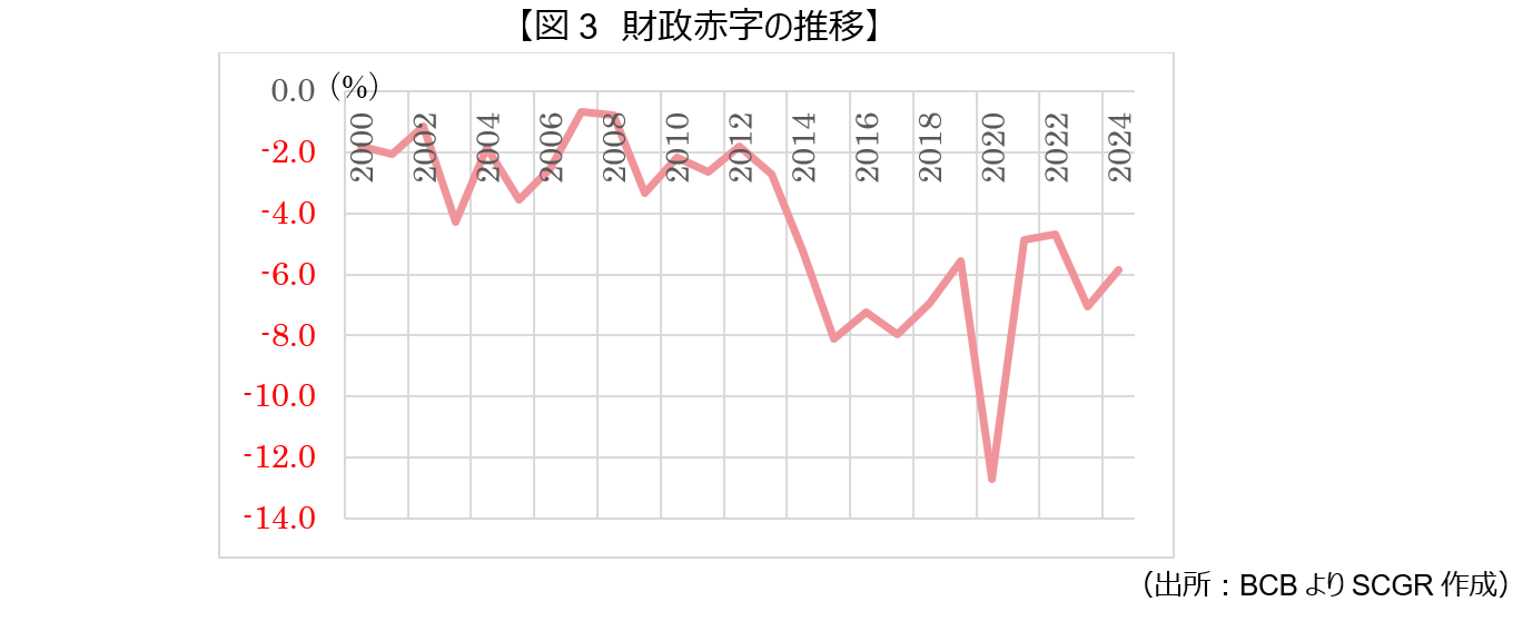 第3次ルーラ政権の財政政策は、財政赤字の縮小を掲げている。しかし、左派政権ならではの社会福祉の拡充もうたわれており、現金給付策「ボルサ・ファミリア」の維持・拡大や、最低賃金のインフレ率を上回る引き上げを断行し、低所得層の購買力を支えてきた。2024年には、財政リスクが強く意識されたことでレアルが大きく売られるなど財政不安が顕在化していたが、2025年に入ると、収益の伸びに応じて支出を増やす新ルールを導入し、中央銀行への高金利政策にも口を出すことが少なくなるなど、財政リスクは後退がみられる。
