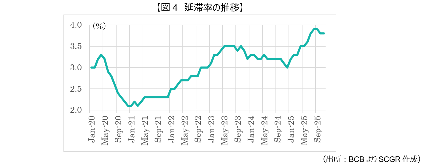 企業にとっても、10%を超える実質金利は投資のハードルを高くしており、企業が新たな工場を建てたり設備を導入したりする際、期待収益率が実質金利を上回る必要があり、この高いハードルにより、多くの企業が長期的な成長投資を控えることにもなりかねない。実際、延滞率の上昇により、銀行の貸出基準が厳格化されており、運転資金の確保が一部では困難になってきている。特に、資本市場(社債発行など)へのアクセスを持たない中小企業にとっては、銀行借入コストの高騰は死活問題となっている。全国工業連盟(CNI)などは、「世界最高水準の金利がブラジル製品のコストを押し上げ、国際市場での競争力を削いでいる」と強く批判している。高金利に加え、通貨レアルが強含んでいることも、輸出産業にとっては逆風となっている。