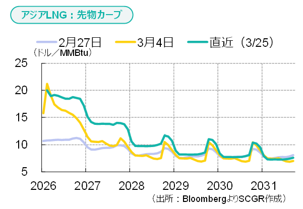 短期的には、価格上昇余地は戦闘がどれほど激化し、供給障害がどこまで広がるか次第だ。中東情勢の緊張が和らげば、あるいは高値による需要破壊が生じれば、価格が幾分調整安となることは想定されるが、需給安定には時間を要するため、戦争前より大きく切り上がった水準で高止まりすることが見込まれる。
