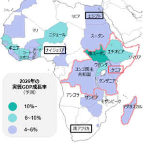 - ケニアを中心とする東アフリカの2025年の実質GDP成長率は4%を記録。イラン情勢悪化前には、2026年の成長率は5.8%に加速すると予測されていた(国連、1月)。