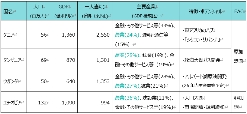 図表②: 東アフリカ主要国の概況
