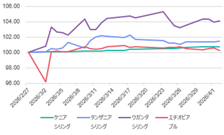 (出所:BloombergよりSCGR作成、2月27日のレートを100とした指数)