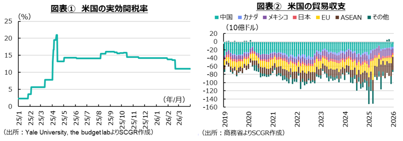 - トランプ大統領が2025年4月2日に相互関税を発表してから、1年が経った。足元で中東情勢が注目を集める中、関税政策を巡る不確実性が継続していることには注意が必要だ。